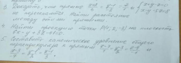 3(x-4)-2(y+4)+1(z-0)=0; 3x-2y+z=20. Найдём точку пересечения этой плоскости с прямой содержащей точку B.