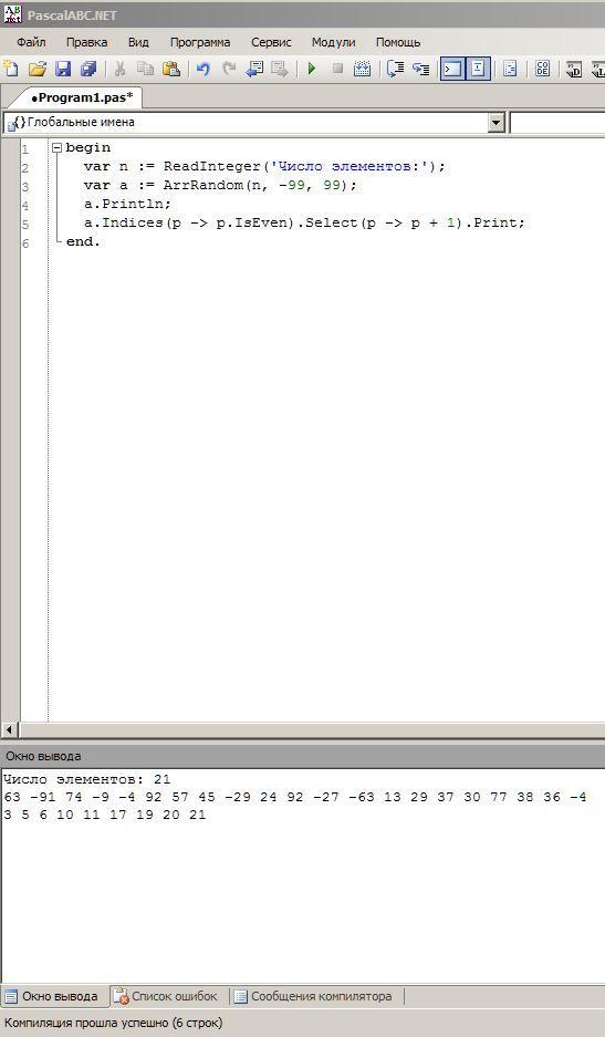 a.Indices(p -> p.IsEven).Select(p -> p + 1).Print