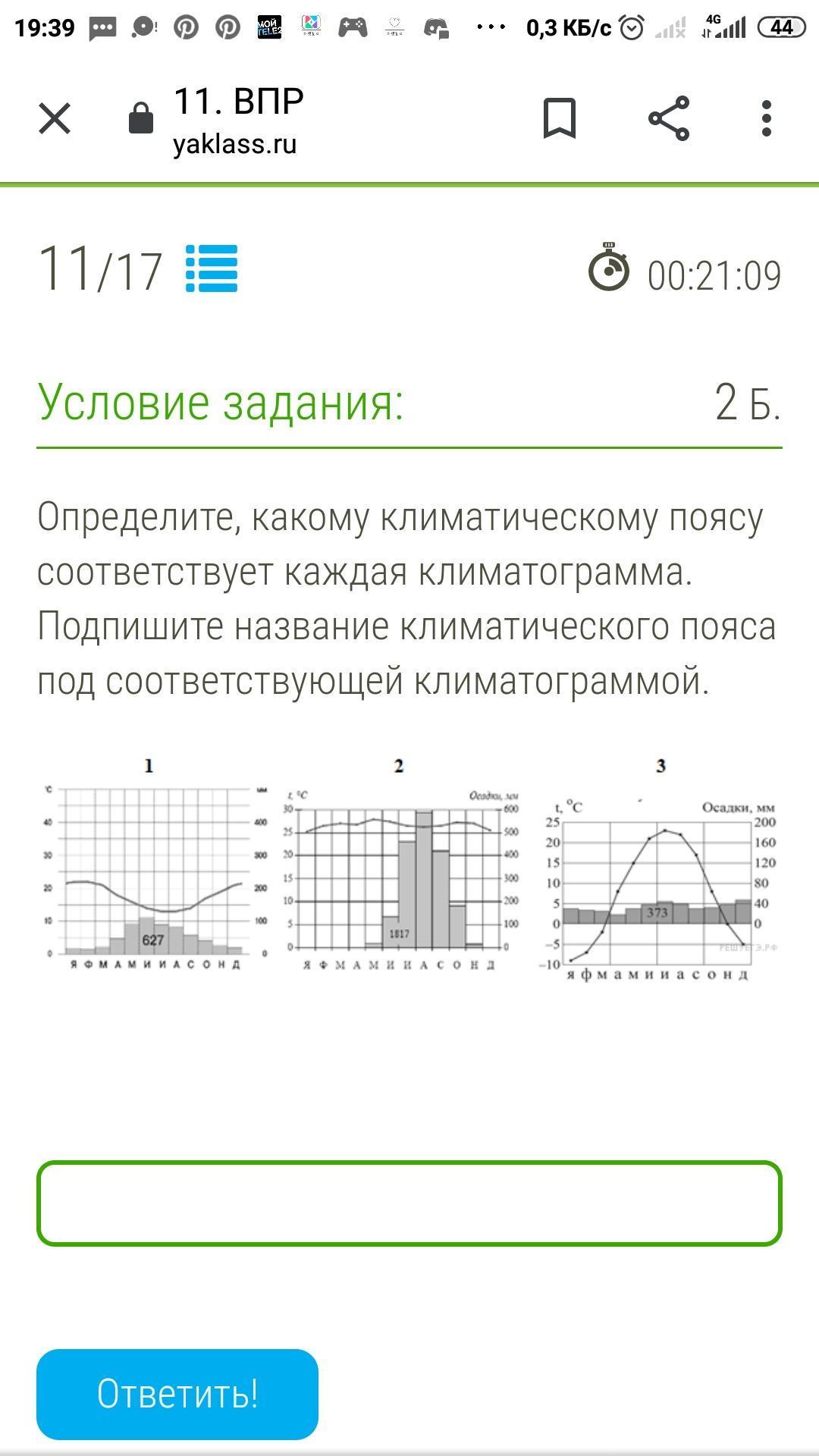 Определите, какому климатическому поясу соответствует каждая климатограмма. Подпишите название климатического пояса под соответствующей климатограммой