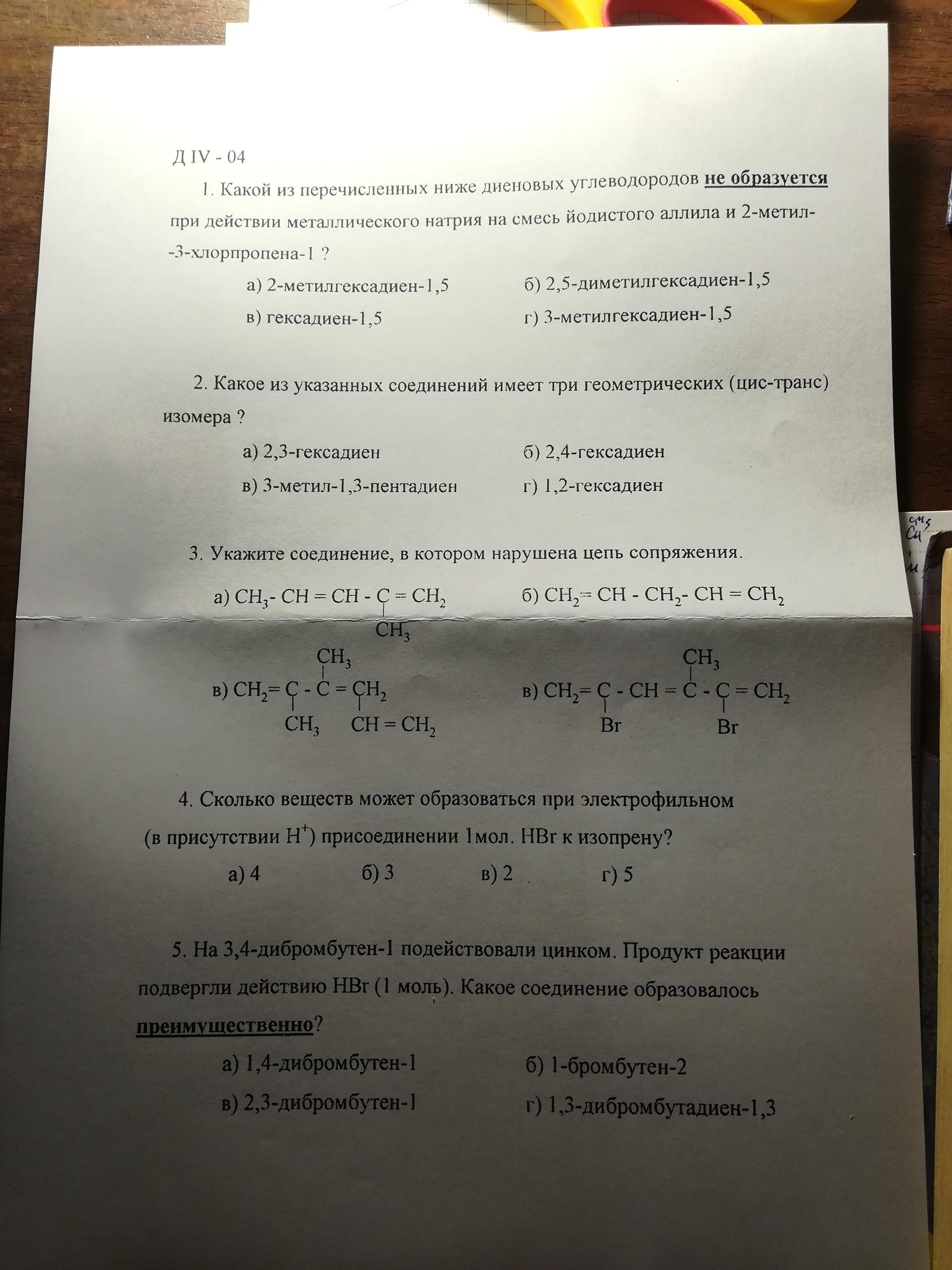 Тест по органической химии. Диены