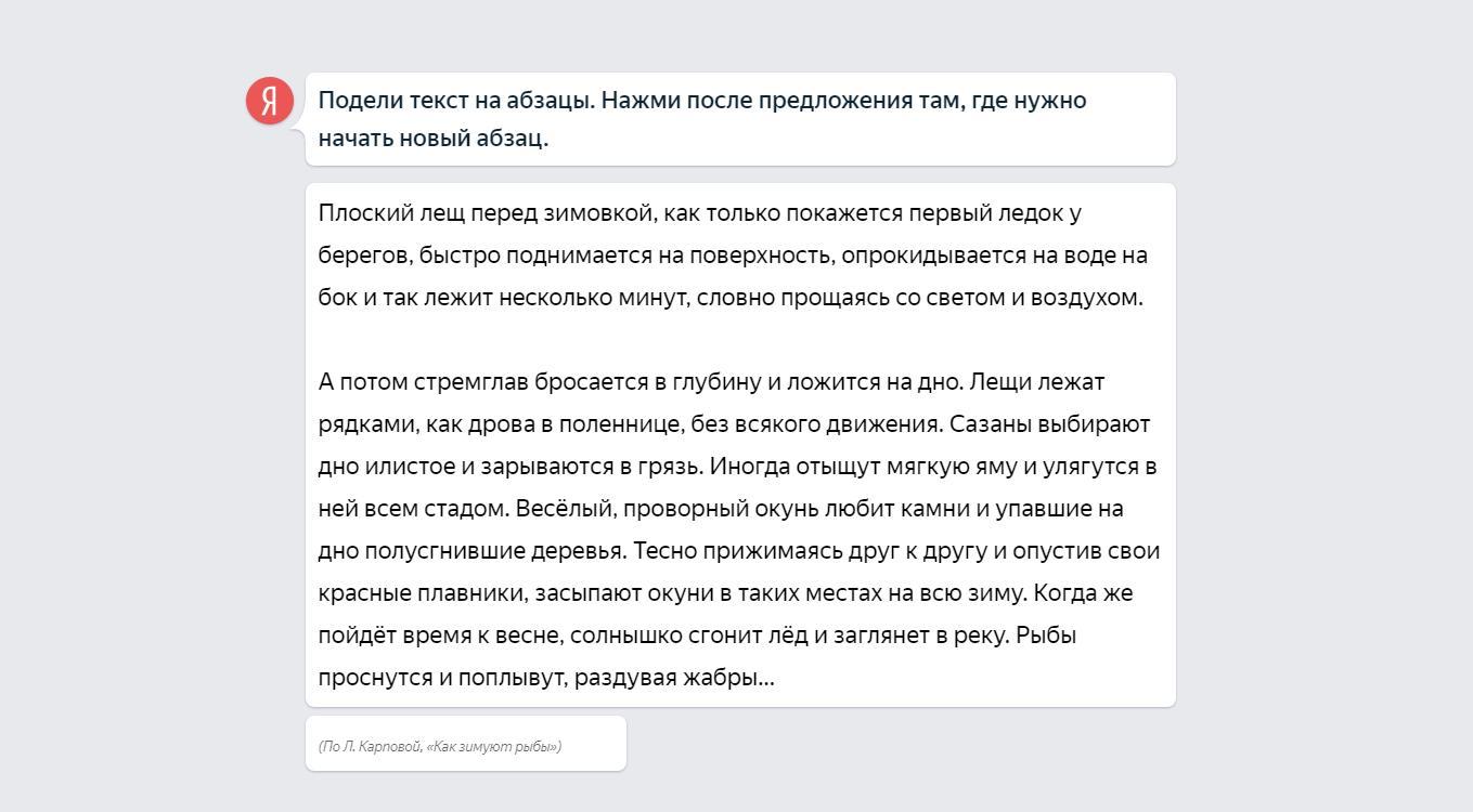 Всего в тексте три абзаца получаются - про три разных вида рыб