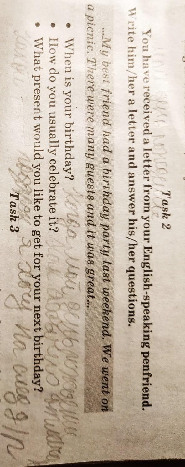 Вы отвечаете на письмо вашему английскому другу по переписке. Напишите ему (или ей) письмо и ответьте на его вопросы.