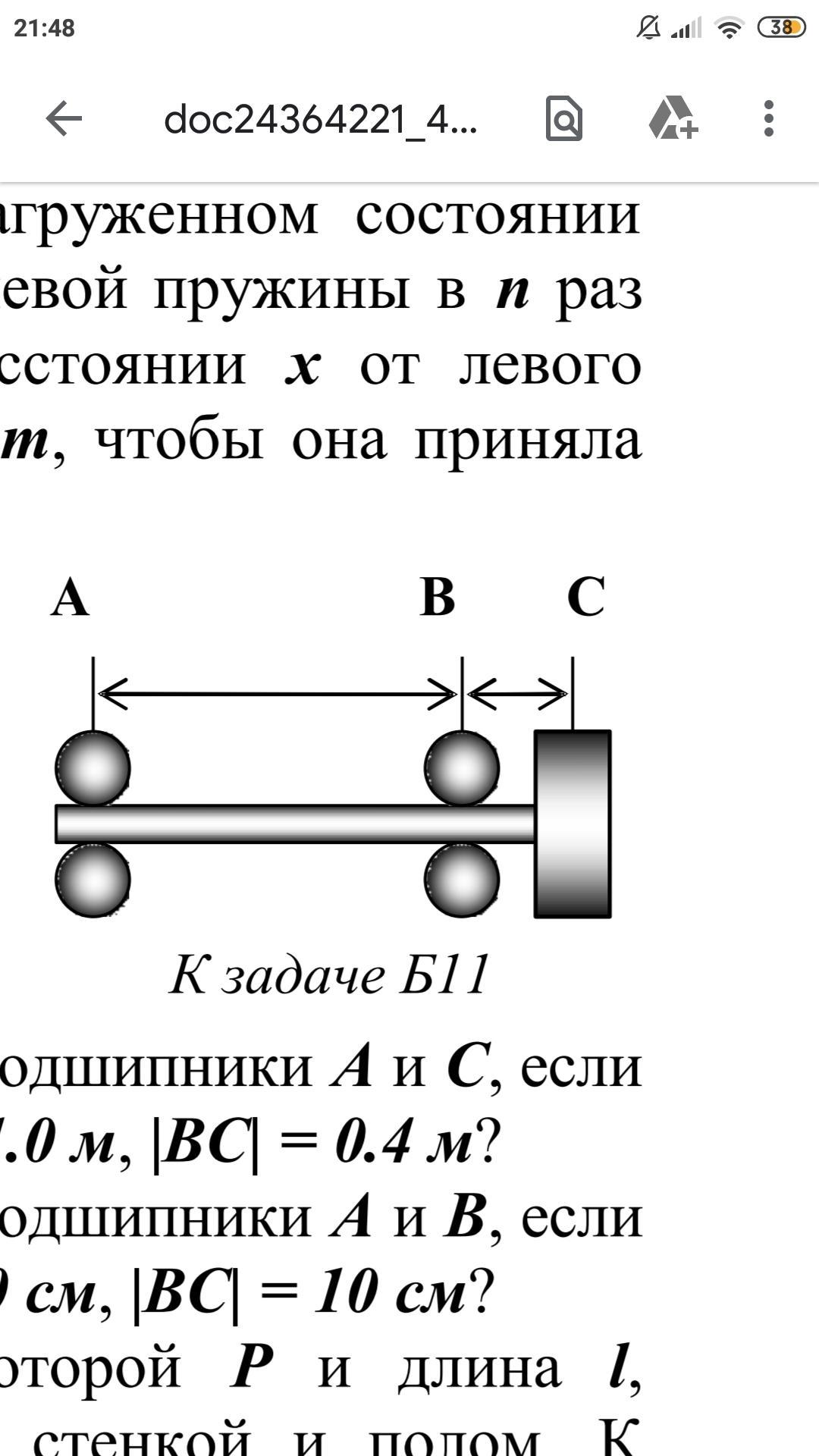 Б11.Чему равны силы давления вала на подшипники А и В, если