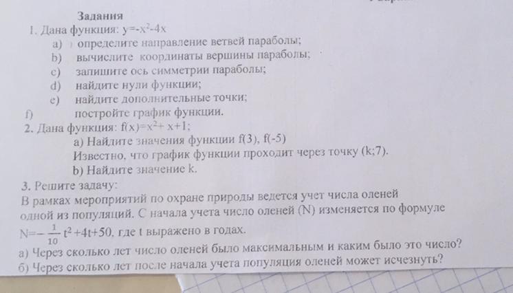 а) График, заданный этим уравнением является параболой. Так как а ∠ 0 (коэффициент при х² отрицательный), ветви параболы направлены вниз.
