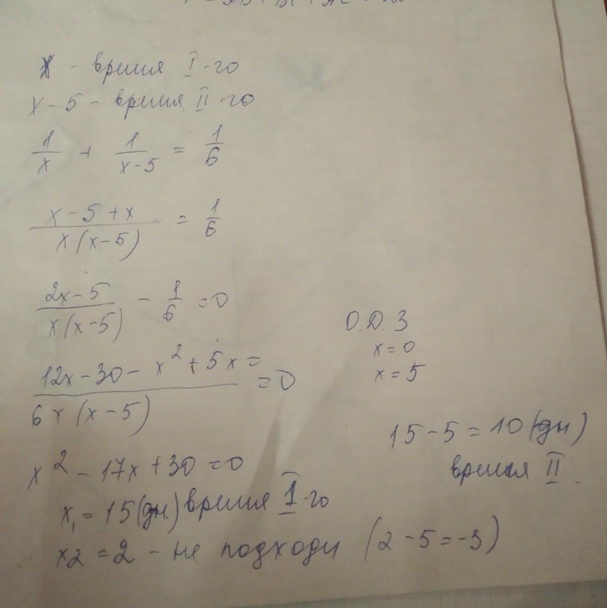 Работая вместе два маляра смогут закончить работу за 6 дней. Сколько времени понадобиться для выполнения всего задания каждому из них если второй работая в отдельности закончил бы задание на 5 дней раньше первогою