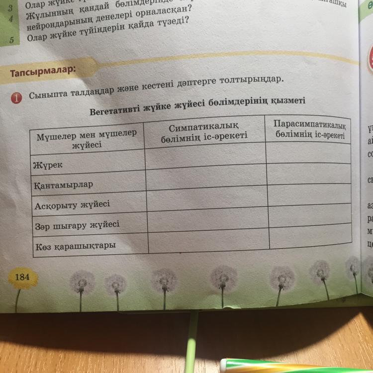 Сыныпта талдаңдар және кестені дәптерге толтырыңдар.