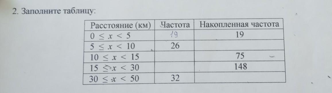 1. Наименьшее значение имеет накопительную частоту (НЧ) 19, но так как это самое наименьшее значение, то НЧ будет такой же, как и абсолютная частота (Ч). Следовательно, Ч=19.
