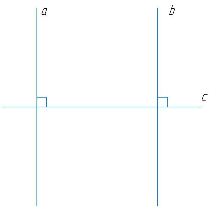 Прямая a ⊥ прямой c. Также прямая c ⊥ прямой b. А как можно назвать прямые a и b, какие они?