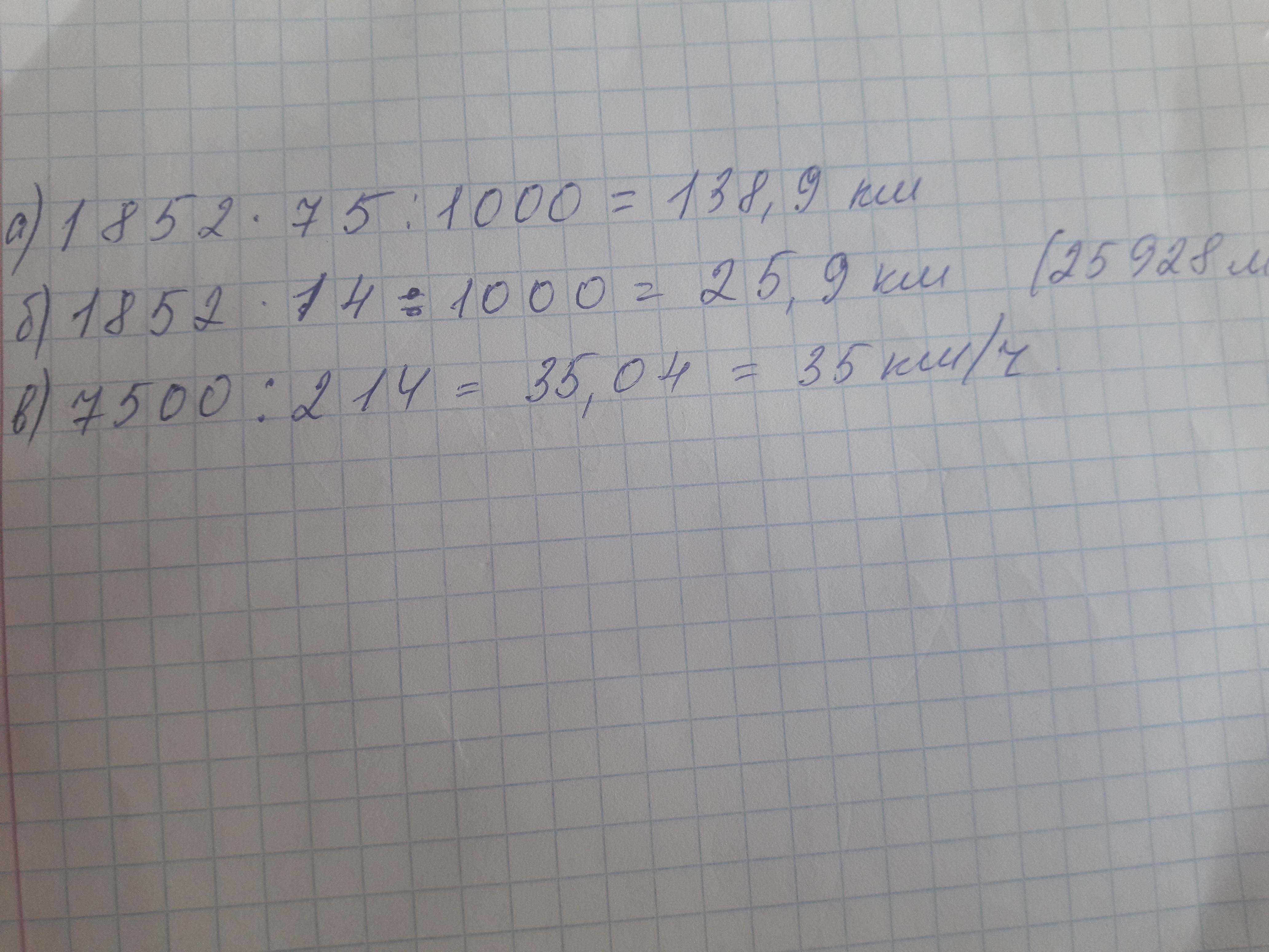 А) Моряки измеряют расстояния в морских милях. Морская миля составляет 1852 м. Корабль прошёл 75 миль. Оцени это расстояние в километрах