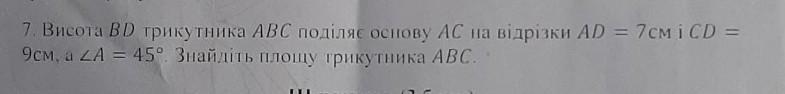 S(ΔABC)=(AC·BD)/2=(16·7)/2=56 кв. см