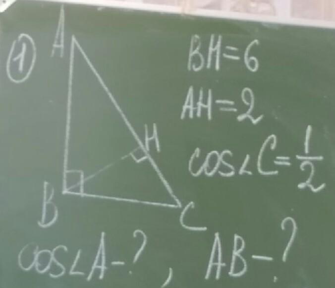 Объяснение: 1) Cos∠C = 1/2, значит ∠C=60° 2) ∠С+∠А=90°, значит ∠А=90° - 60°=30°, поэтому Cos∠А=√3/2 3)Рассмотрим Δ АВH- прямоугольный, с углом в 30°, по свойству катета, лежащего против угла в 30°, имеем катет BH= 1/2·АВ, т.е. АВ= 2·6=12