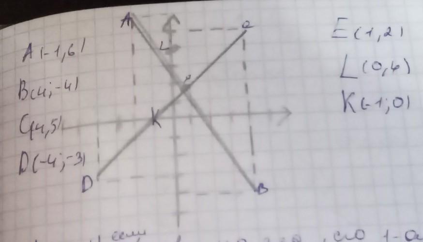 Начертите отрезки AB и CD, если A(-1; 6); В(4; -4) и сл. В.
