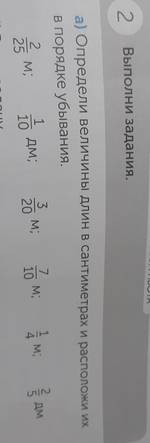 7/10 м, 1/4 м, 3/20 м, 2/25 м, 2/5 дм, 1/10 дм