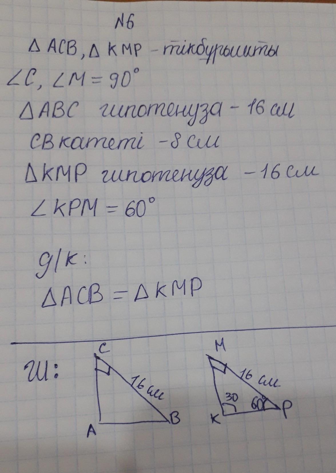треугольники АСВ и КМР прямоугольные. просто на фото написано на казахском)