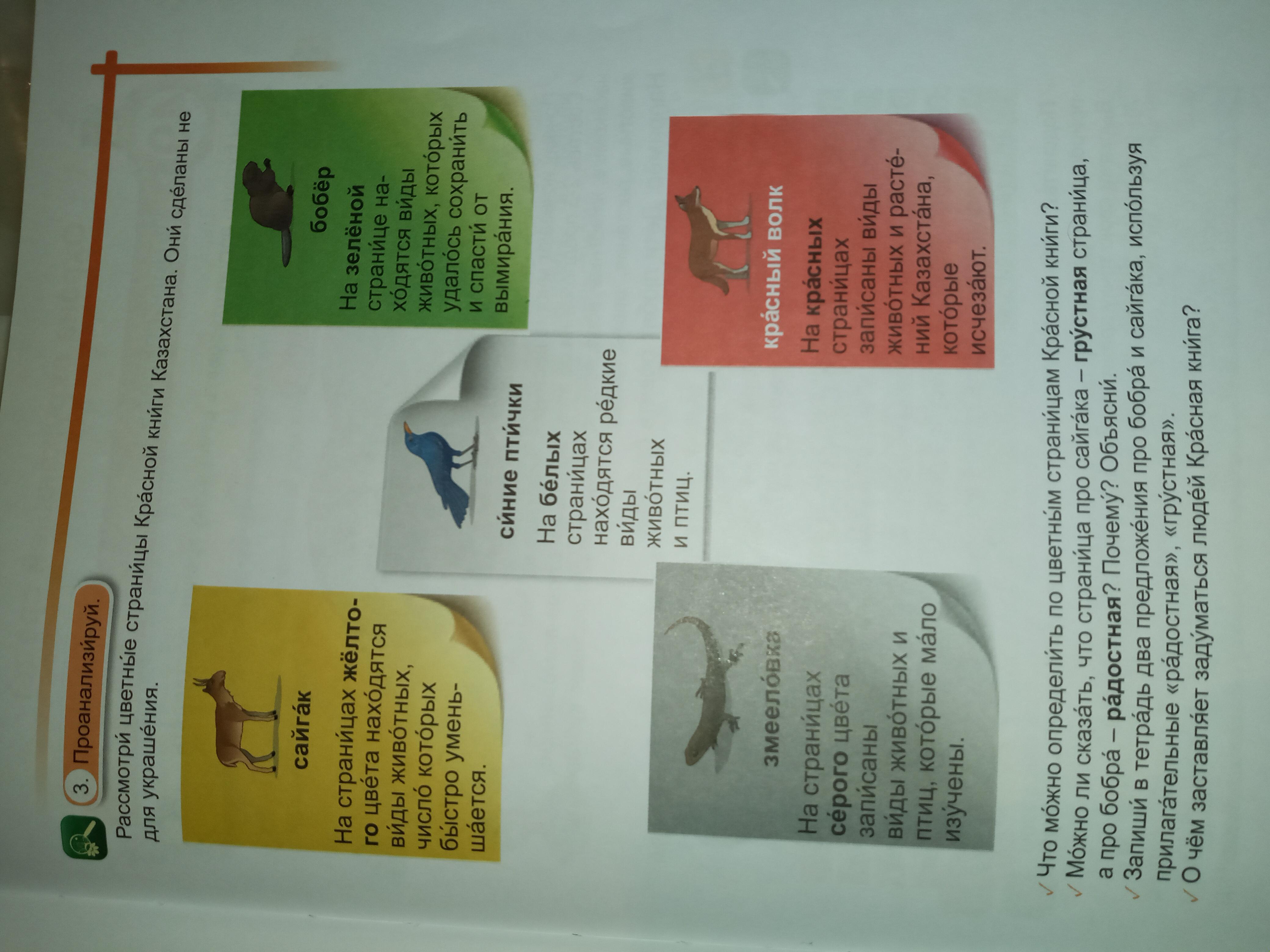 Красная книга заставляет задуматься о том, что не стоит убивать редких животных, ведь их и так мало. Если их истреблять, то редких и прекрасных животных как сайгак, синие птички, бобёр и тд не будет.