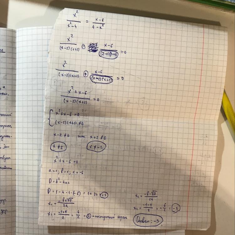 Приравняем к нулю вторую скобку. х²+х-6=0; По Виета х=-3; х=2- не подходит, т.к. обращает знаменатель в нуль. Значит, ответ х=-3.