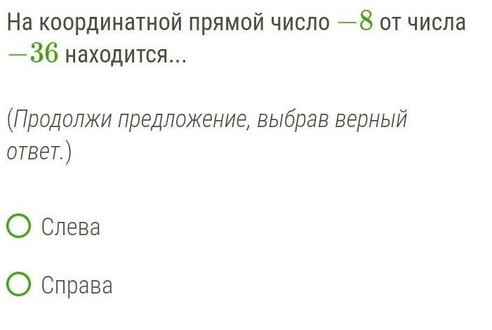 На координатной прямой число-8 от числа - 36 знаходиться слева