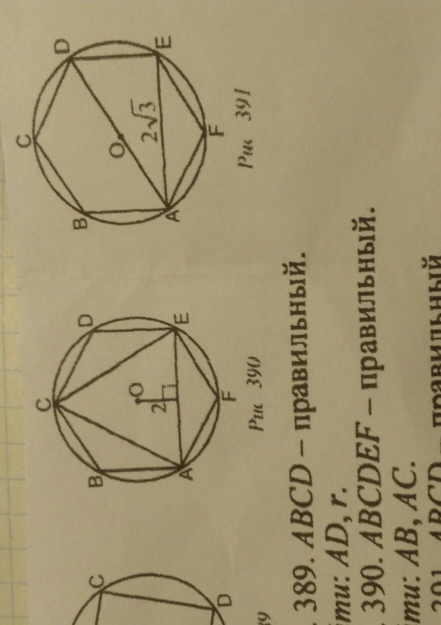 Рис. 390: ABCDEF - правильный. Найти AB и AC.