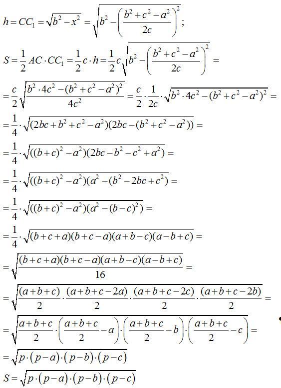 Данная формула называется формулой Герона.