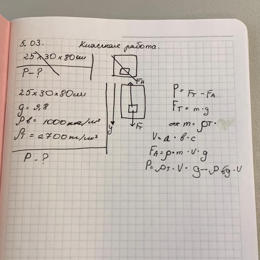 P = Fт - Fa = 1620 - 600 = 1020 Н