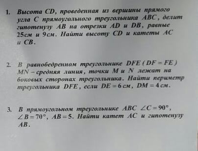 Дано: ΔАВС - прямоугольный, CD - высота, AD=25 cм, BD=9 см. Найти CD, AC, BC.