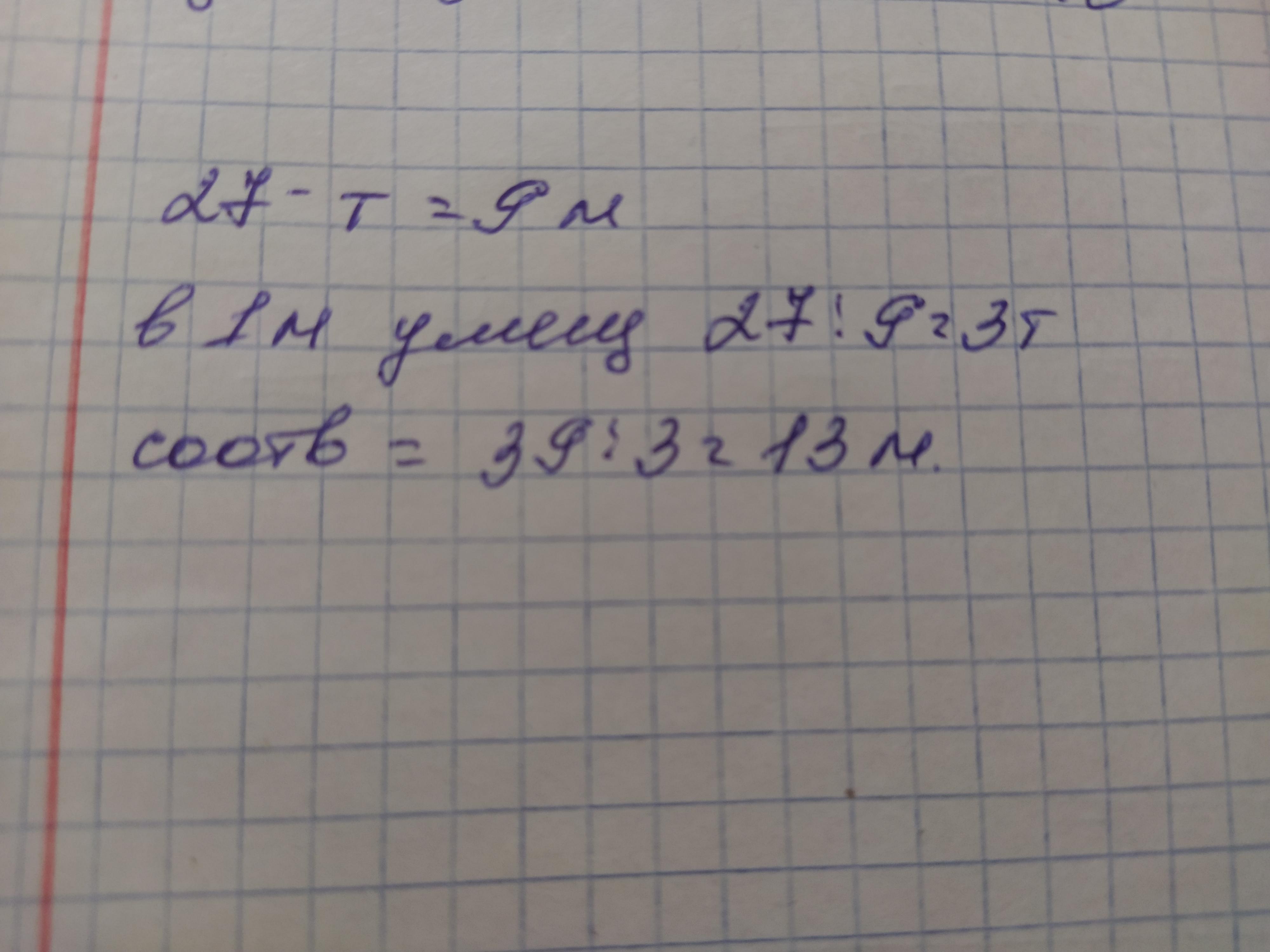 чтобы вывести с полей 27 т зерна требуется 9 машин Сколько таких машин потребуется чтобы вывести 39 т зерна?
