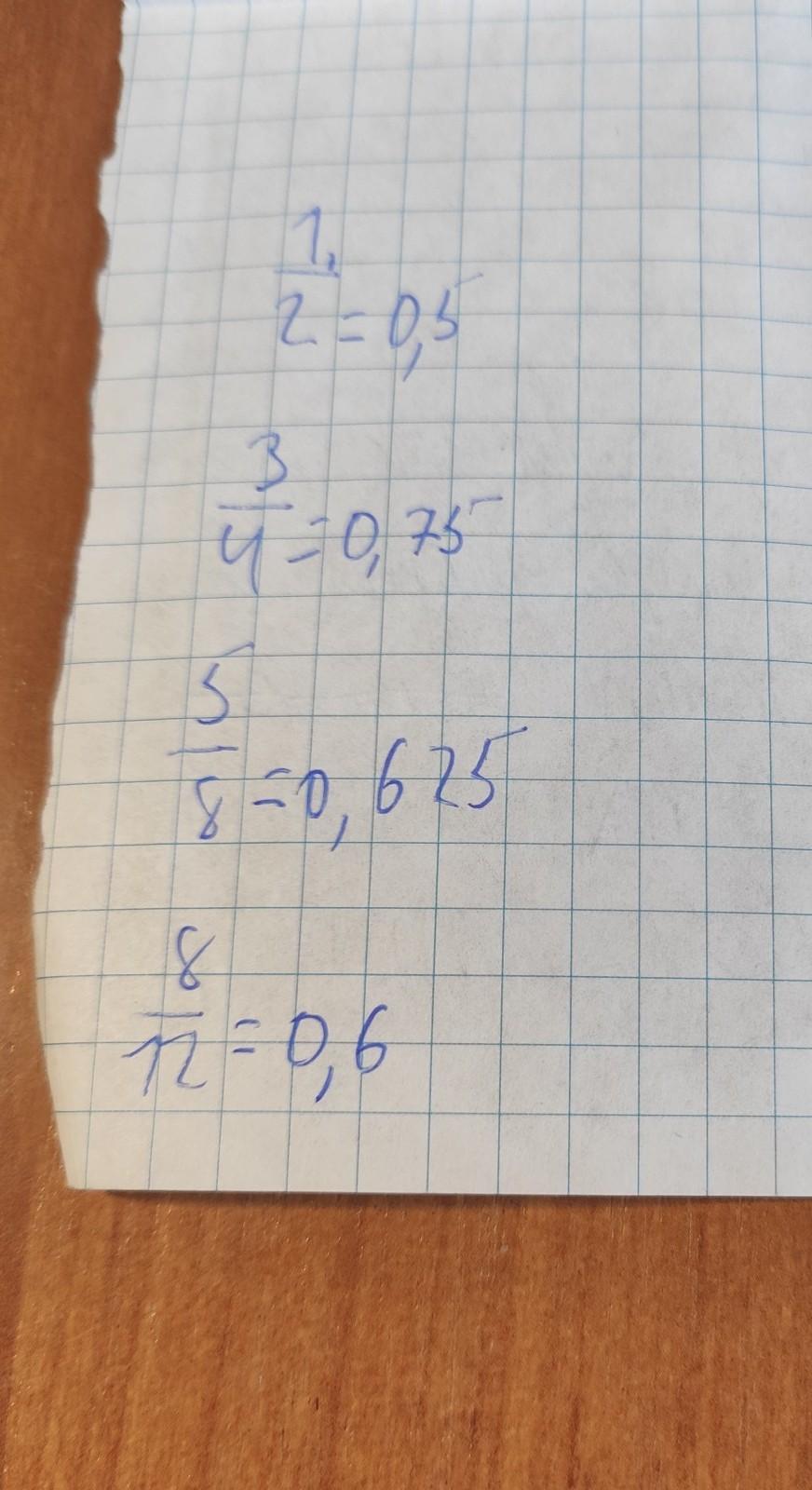 Ответ: 1/2=12/24 доплнительный множитель 12 ; 3/4=18/24 дополнительный множитель 6 ; 5/8=15/24 дополнительный множитель 3 ; 7/12=14/24 дополнительный множитель 2