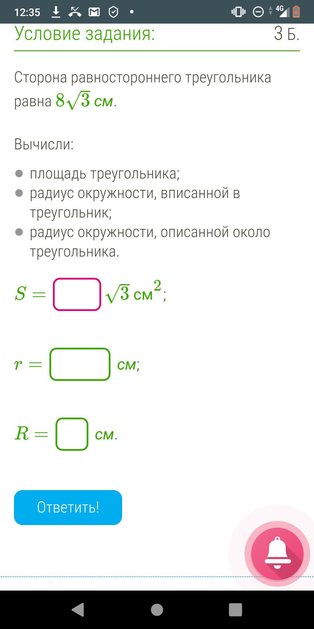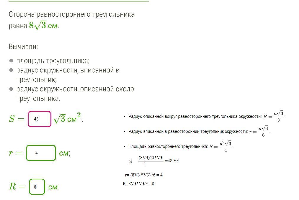 1. S=(√3/4)а²=(√3/4)*192=48√3 см²