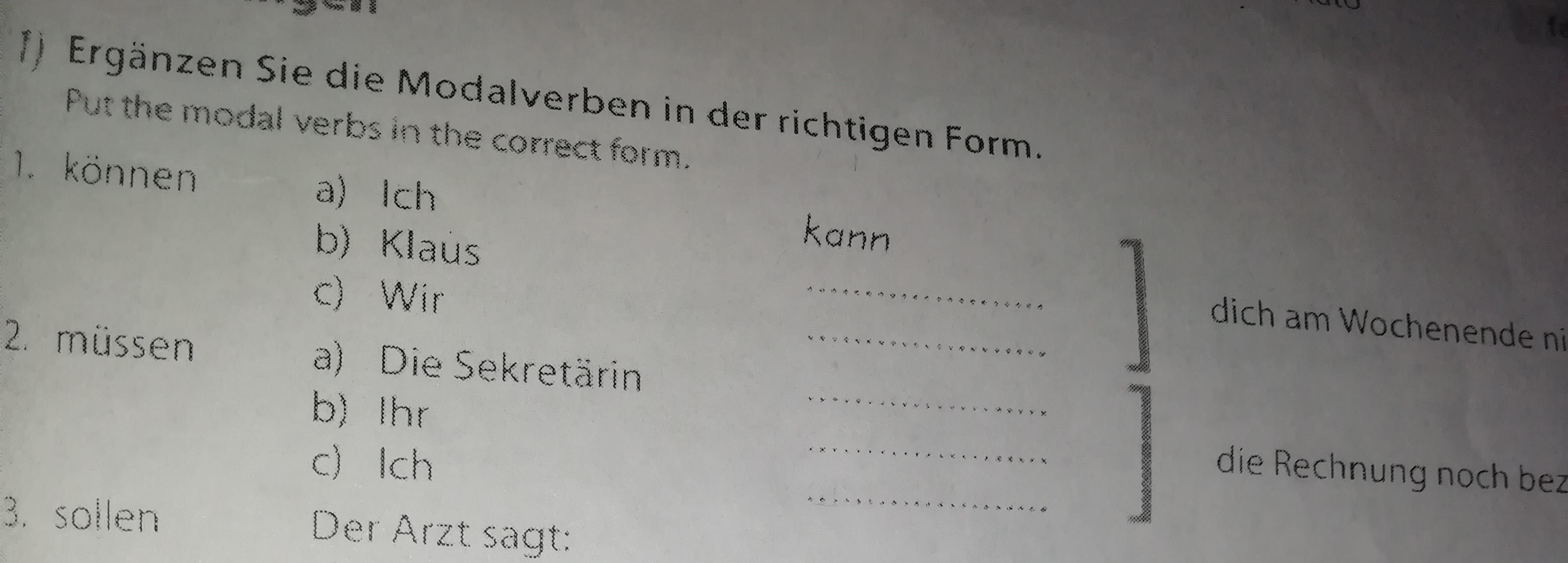 Пример: Die Sekretärin kann die Rechnung nicht bezahlen.