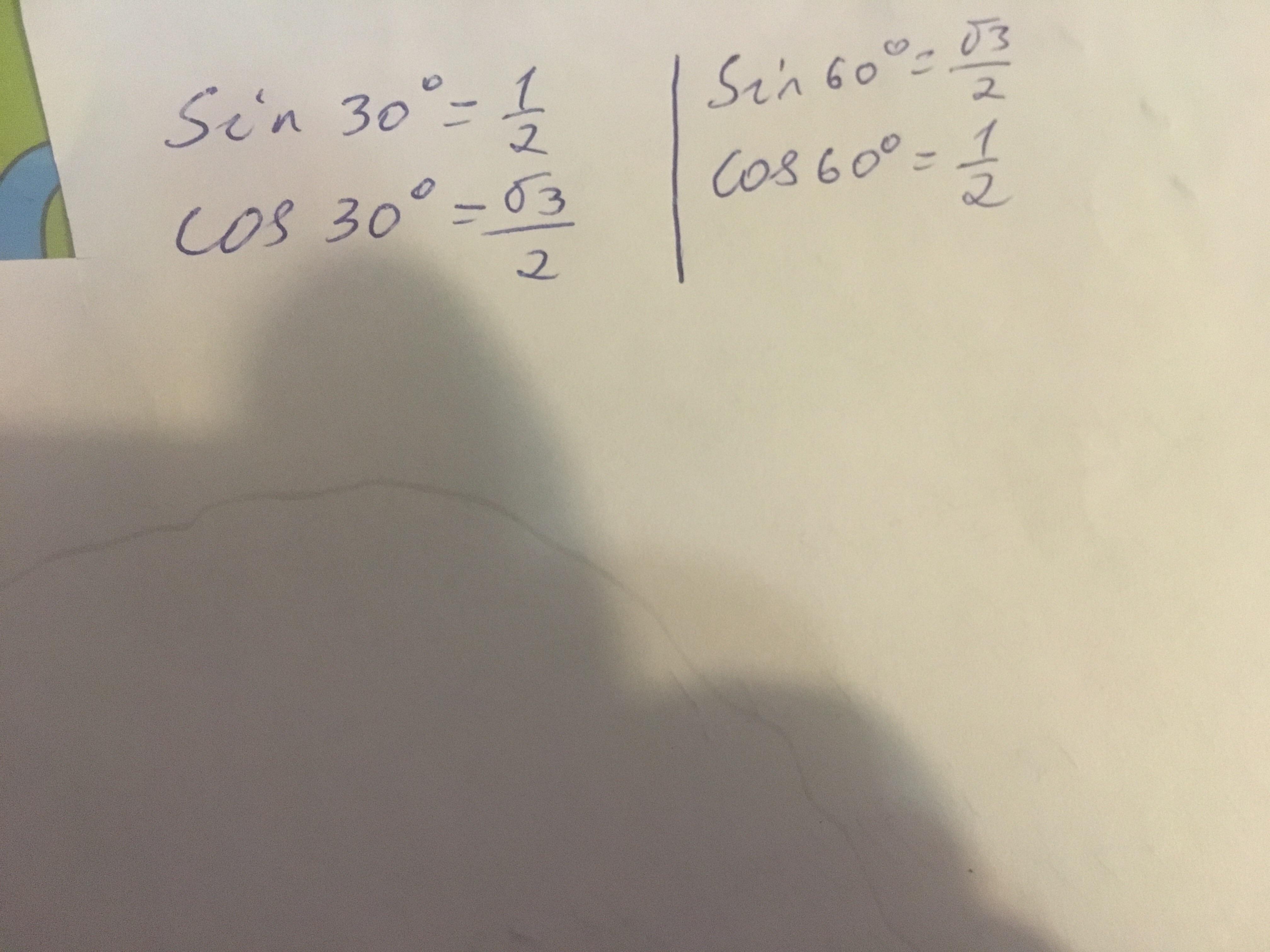 Найдите значения синуса и косинуса для угла в 30°; в 60°