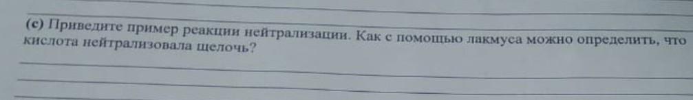 Приведите пример реакции нейтрализации Как с помощью лакмуса можно определить что кислота нейтрализуется щелочь помогитееееееее пжжжжжж СРОЧНООООООООО