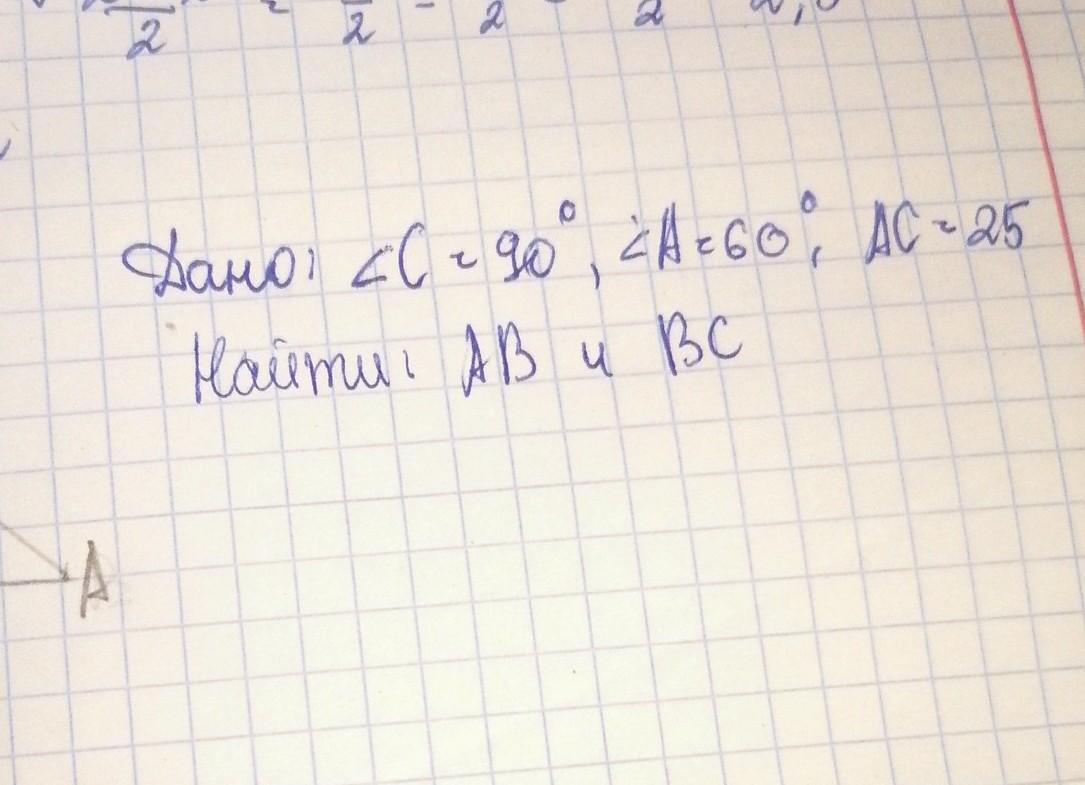 По теореме Пифагора ВС=√(АВ²-АС²)=√(2500-625)=√1875=25√3.