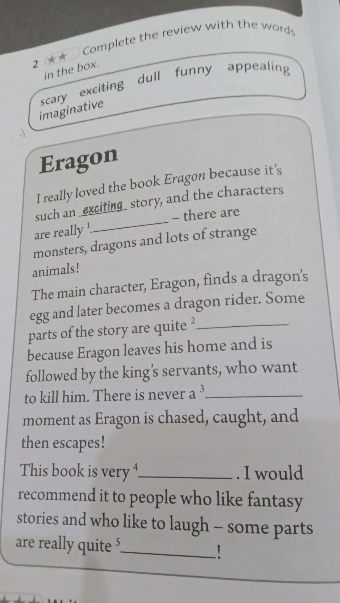 1-appealing, 2-scary, 3-dull, 4-imaginative, 5-funny