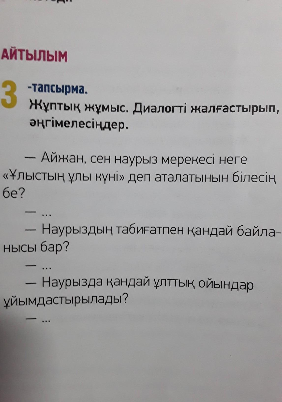 Ответ:- Айжан, сен наурыз мерекесі неге «Ұлыстың ұлы күні» деп аталарының білесінбе?