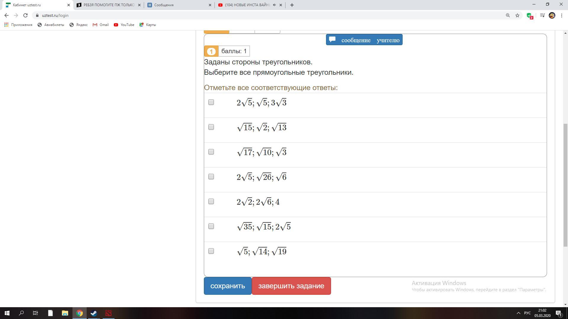 3)Проверяем √17²≠√10²+√3² Не подходит.
