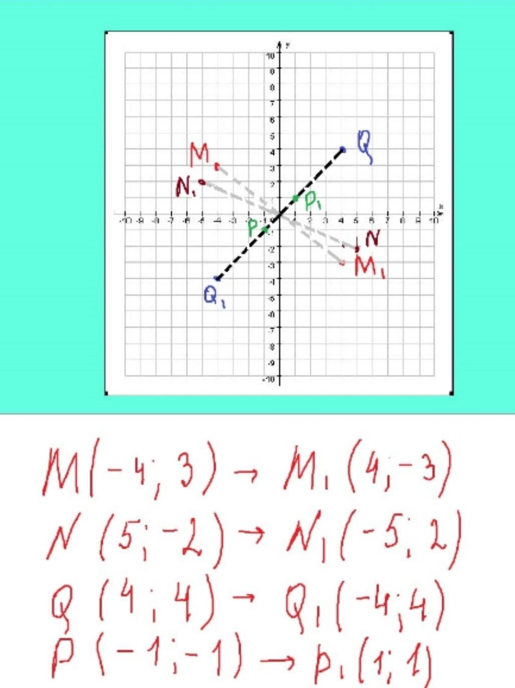 вот М (-4;)3 N(5;-2) Q(4;4) P(-1;-1)
