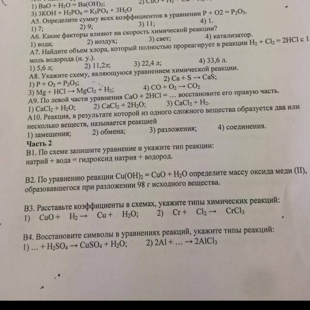1) CuO+ H2 = Cu + H2O реакция замещения