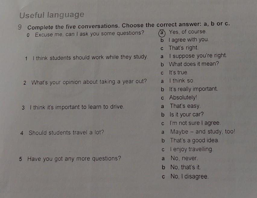 в 1: "Я думаю студентам следует работать, пока они учатся" Твой ответ - a (Я предполагаю ты прав). Разве a? Может b (Что это означает)? Думаю b, потому что ни a, ни c (Это правда)