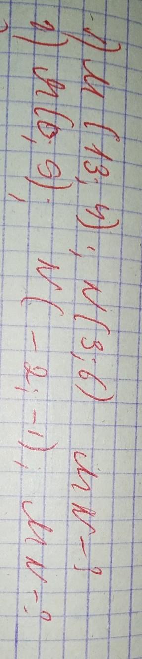 1); ; M(13;4); ; ,; ; N(3;6)\\MN=sqrt{(13-3)^2+(4-6)^2}=sqrt{10^2+(-2)^2}=sqrt{104}\\\2); ; M(0;9); ; ,; ; N(-2;-1)\\MN=sqrt{(0+2)^2+(9+1)^2}=sqrt{2^2+10^2}=sqrt{104}