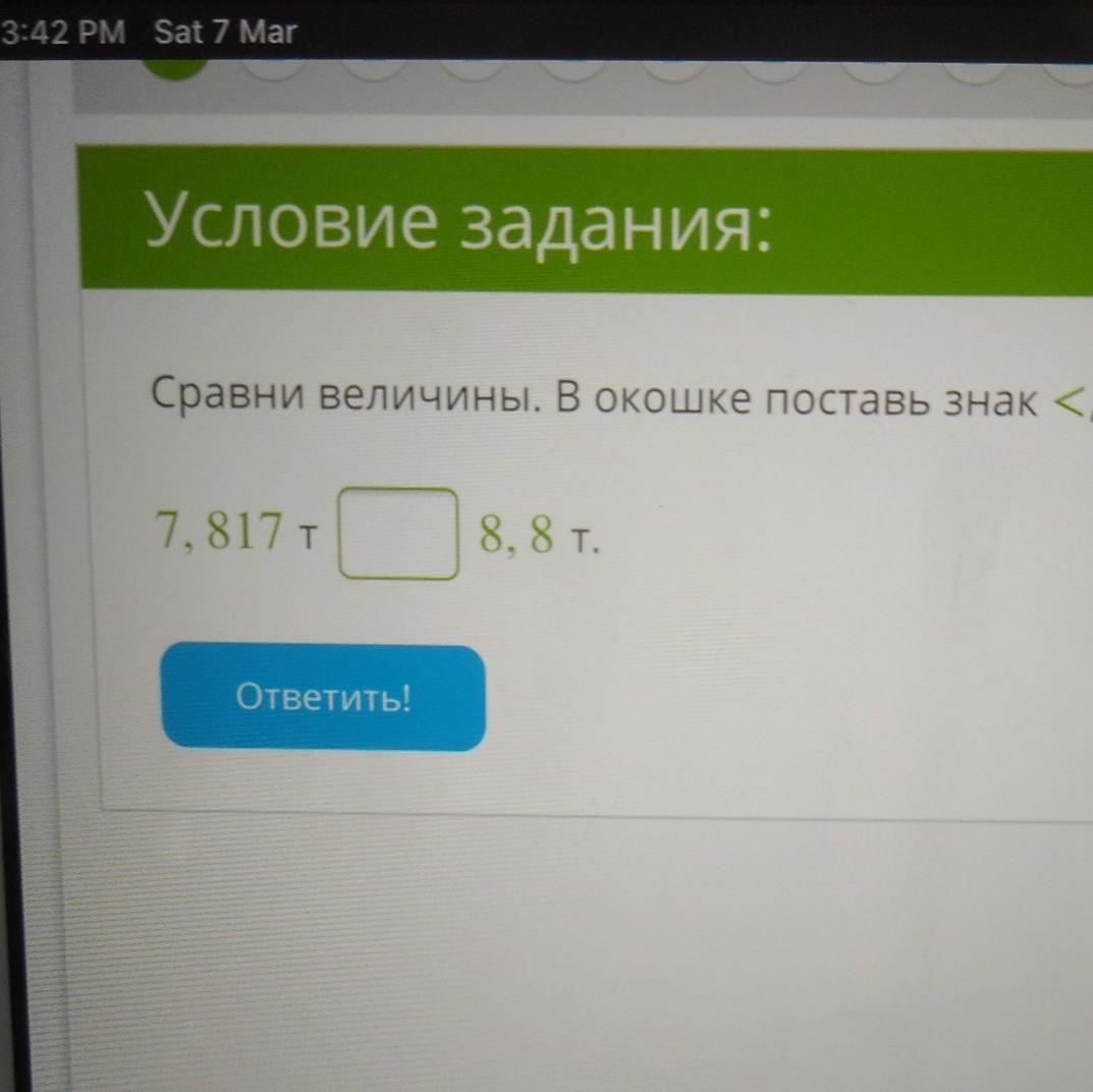Пошаговое объяснение:7,817т-целых тонн тут 7 8,8т-целых тонн 8 то есть 7<8