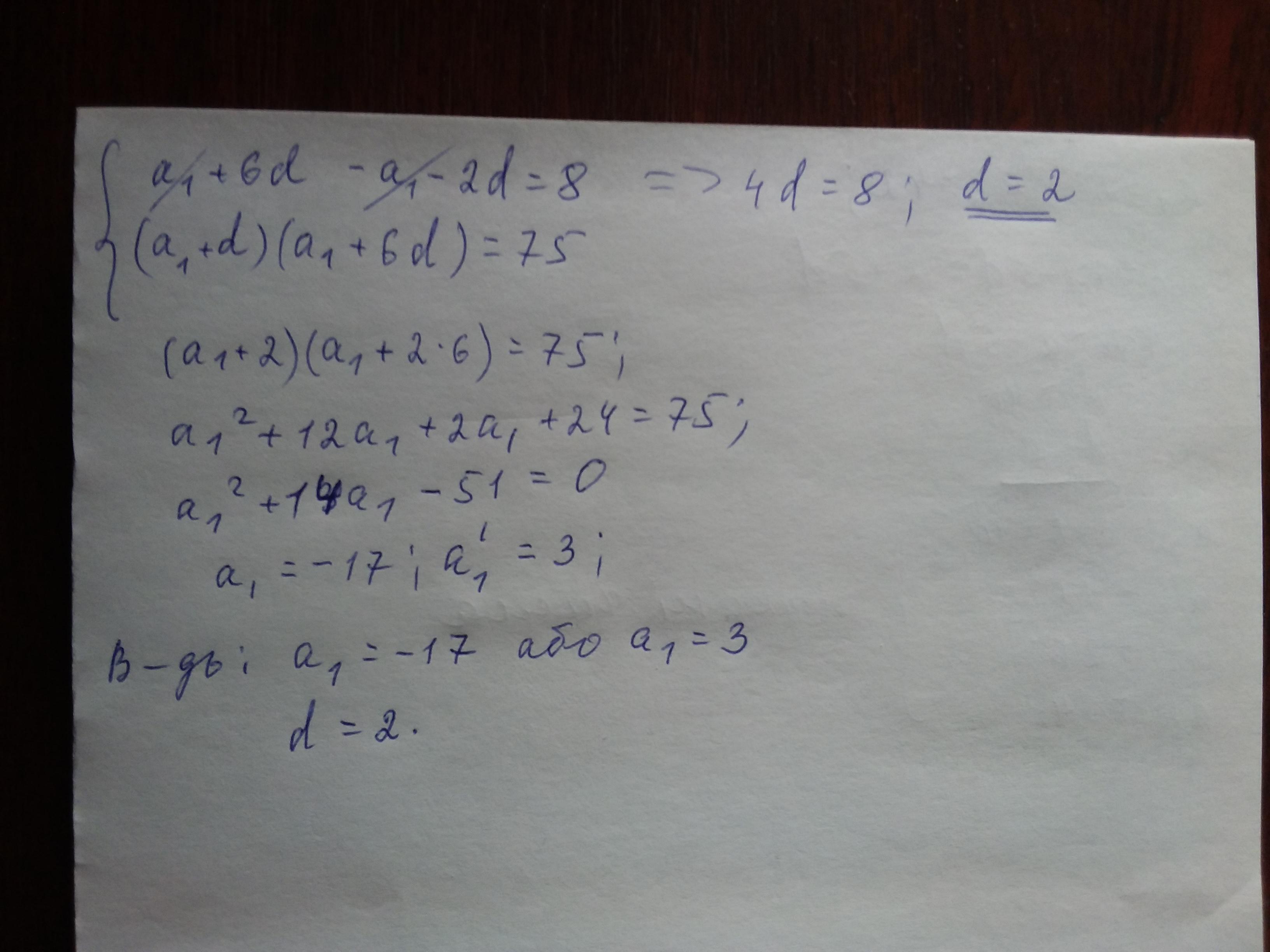 нам известен d, который мы можем подставить в уравнение и привести его к простому квадратному