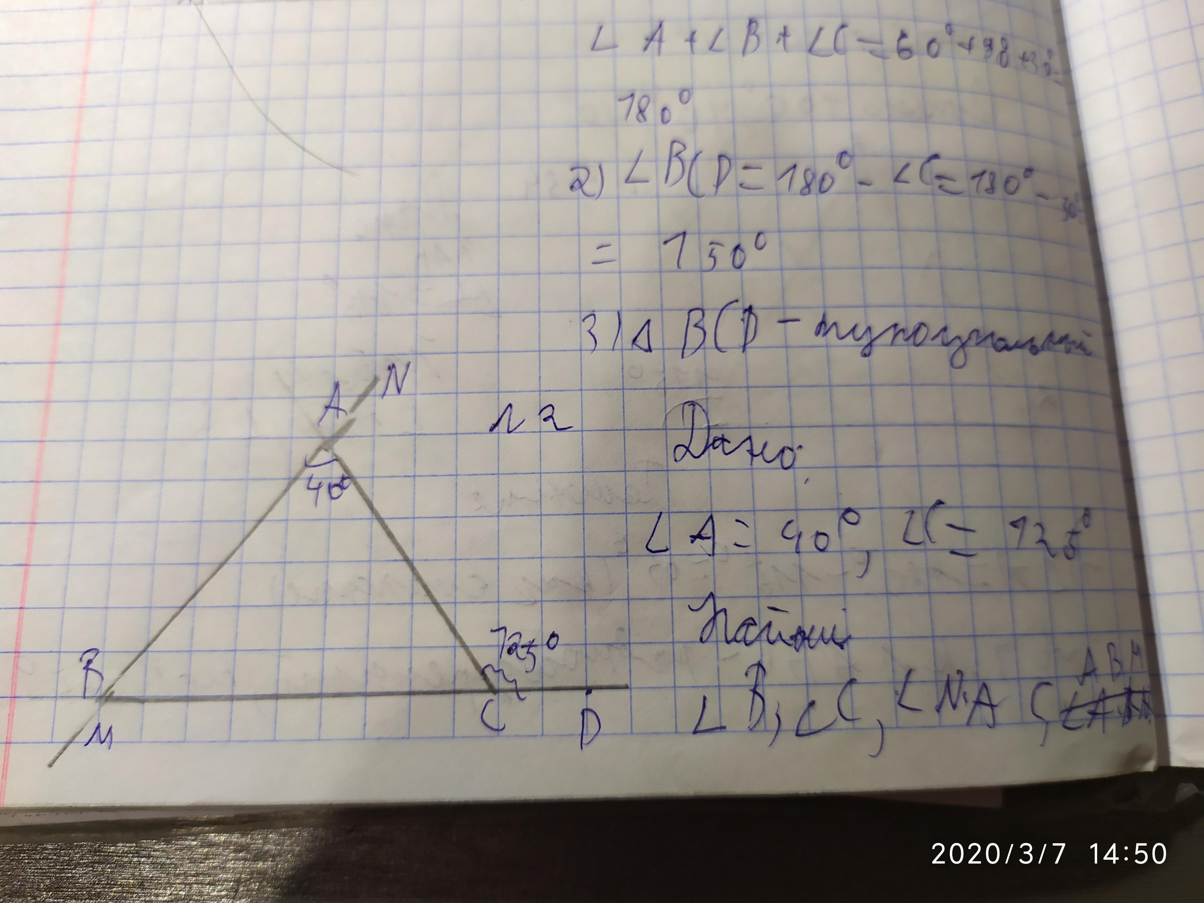 Угол NA=40(тк угол ВАС и NA вертикальные)