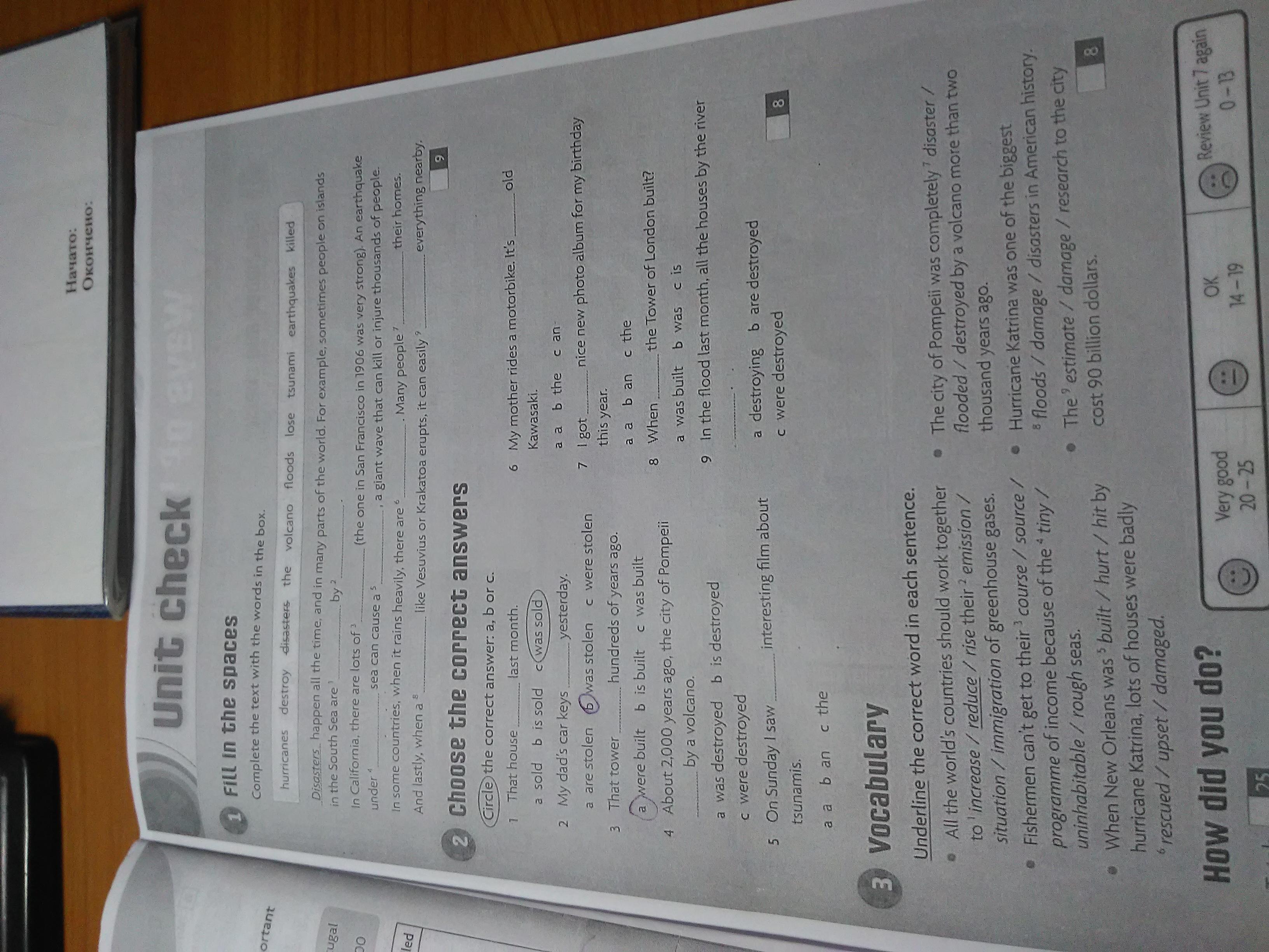 Ответ: 1) 1 killed (убиты), 2 hurricanes (ураганы) , 3 earthquakes (землетрясения), 4 the, 5 tsunami, 6 floods (наводнения) , 7 lose (теряют), 8 volcano, 9 destroy (разрушить)