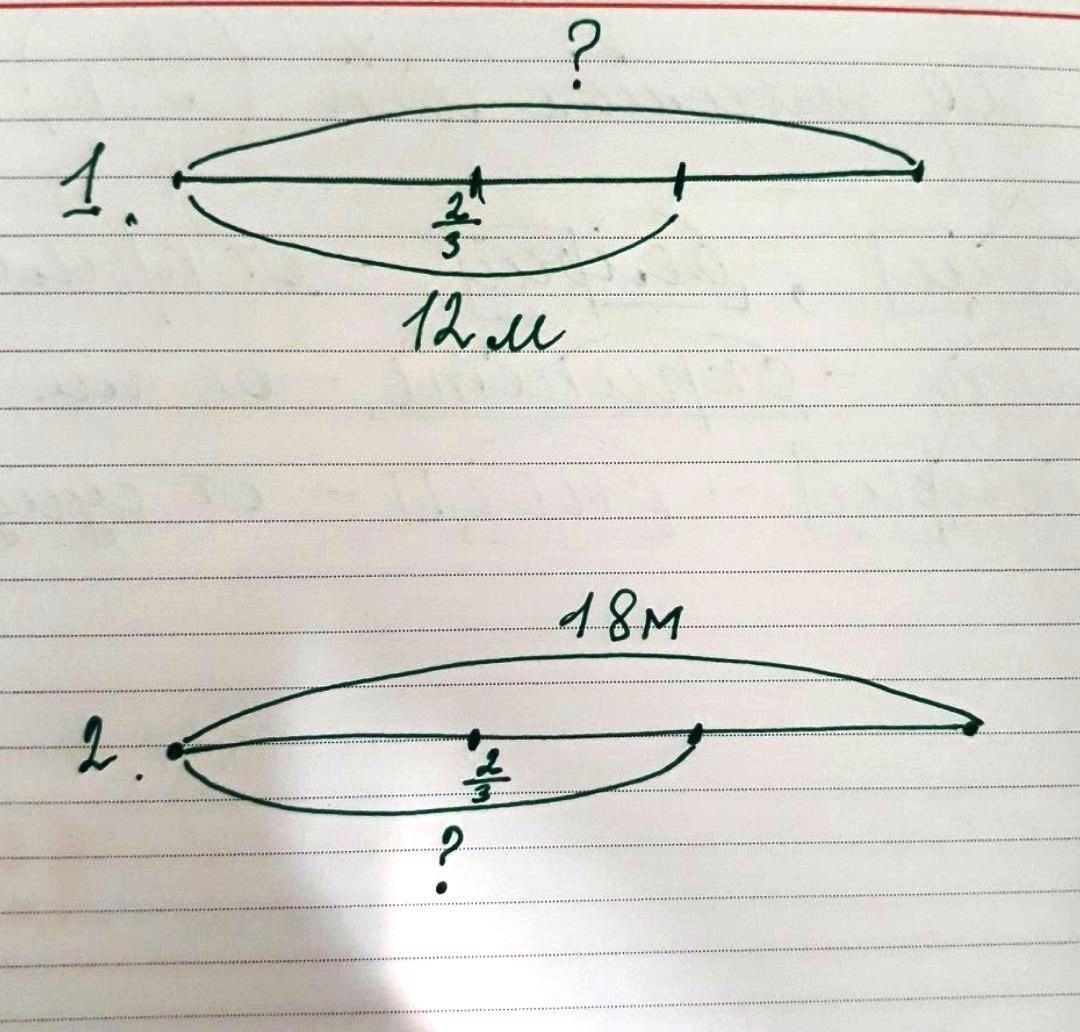 Реши задачу От ленты отрезали 12 м, что составило 2/3 всей длины.Чему равна длина всей ленты? Составь и реши обратрую задачу. Можно пожалуйста вместе с чертежом