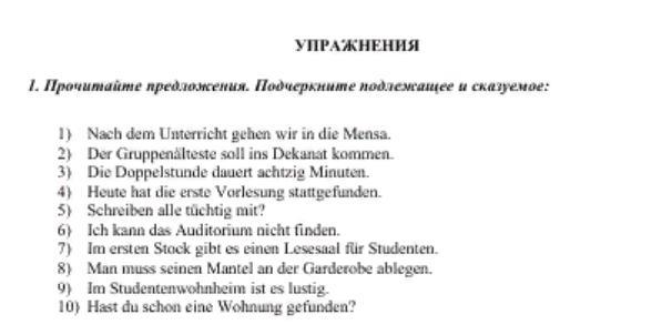 Подлежащее (das Subjekt) подчёркнуто,
