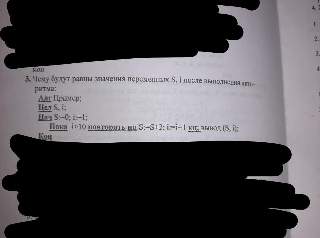 после цикла s=0, i=1, т.к. цикл ни разу не выполнится (i<10)