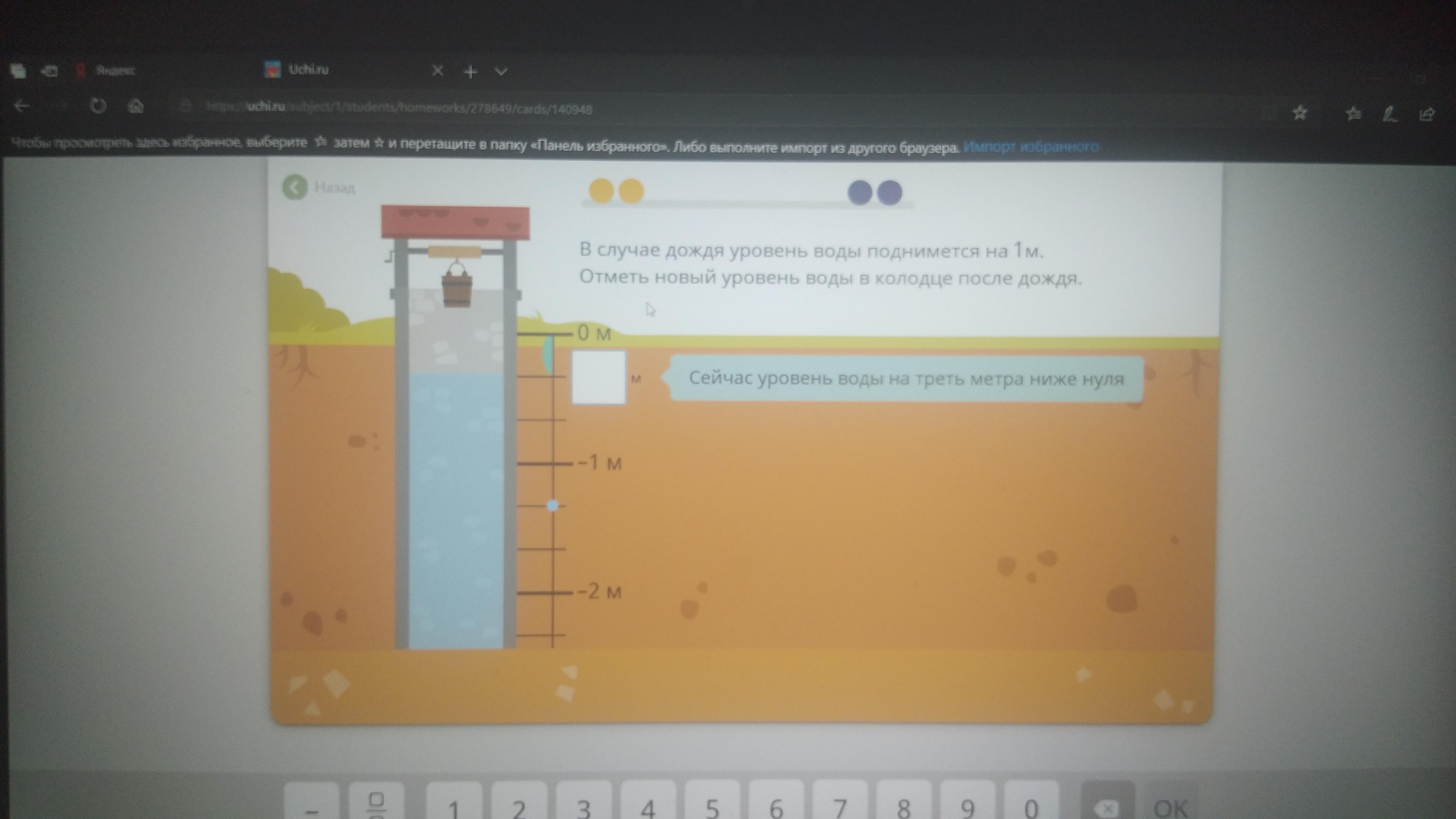 В случае дождя уровень воды поднимается на 1 м. Отметь новый уровень воды в колодце после дождя.