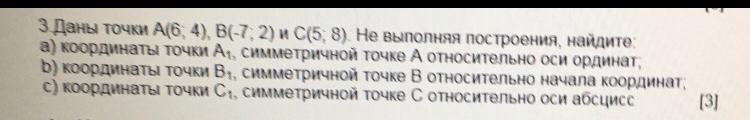 Даны точки A(6;4), B(-7;2) и С (5;8). Не выполняя построения, найдите