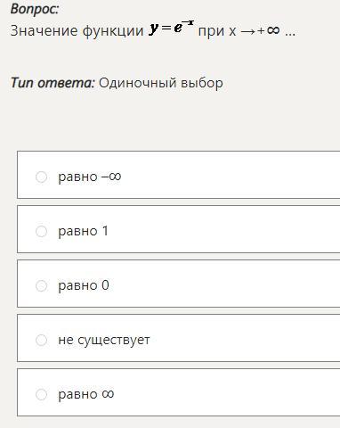 у=е^-х=1/е^х, при х->∞ е^х->∞, у->0