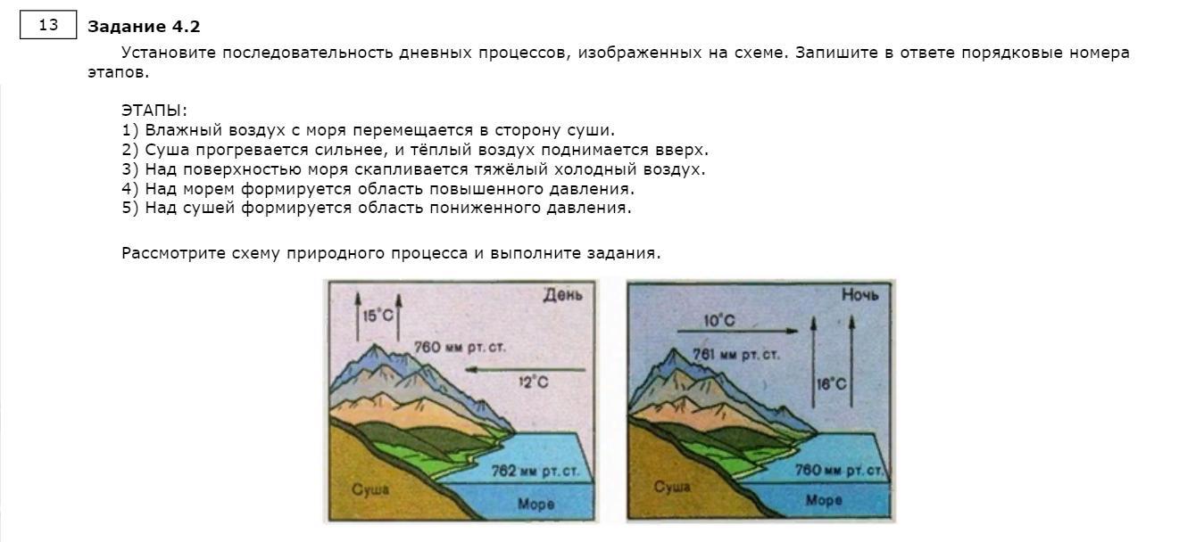 Летом суша нагревается быстрее и над ней формируется облать пониженного атмосферного давления. Над морем воздух холоднее и там область высокого давления. Воздух моря движется в сторону суши (из области повышенного давления в область с пониженным давлением)